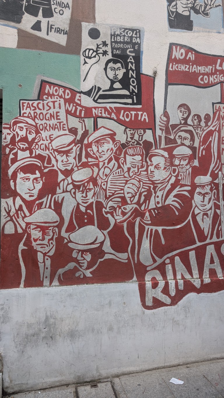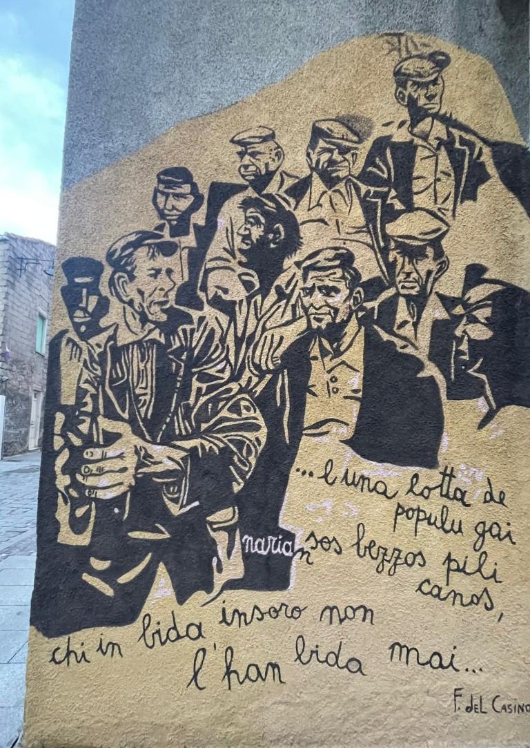 Orgosolo war lange Zeit ein Symbol für Widerständigkeit und Eigenständigkeit – diese Haltung spiegelt sich deutlich in den Bildern wider. Viele Wandmalereien beziehen sich auf historische Ereignisse wie den italienischen Widerstand gegen den Faschismus, aber auch auf internationale Themen, von Arbeiterbewegungen bis zu globalen Konflikten.