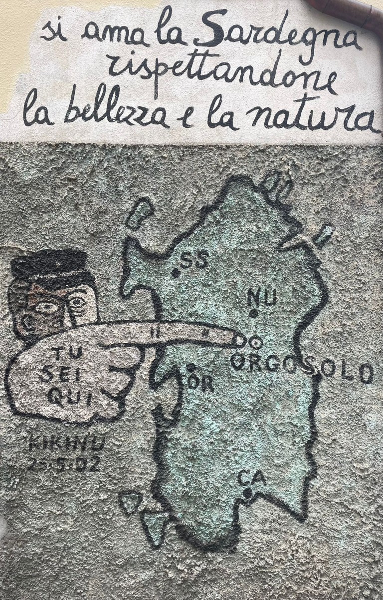 Auch wenn Orgosolo das bekannteste Beispiel ist, blieb die Wandmalerei kein isoliertes Phänomen. Orte wie San Sperate, Villamar, Serramanna oder Carbonia griffen die Idee auf und entwickelten eigene visuelle Erzählungen. Gemeinsam bilden sie ein sardisches Netzwerk öffentlicher Kunst, das an antike Wandzeichnungen, mexikanische Revolutionsmalerei und moderne Street Art erinnert.