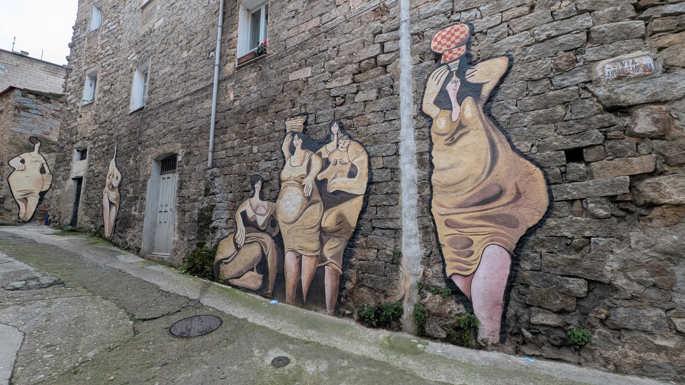 Mit dem gesellschaftlichen Wandel veränderte sich auch der Charakter der Murales. Während frühe Werke oft dramatisch, politisch aufgeladen und kollektiv geschaffen waren, wurden die späteren Wandbilder erzählerischer und ruhiger. Sie zeigen Szenen des Alltags, Feste, Hirten bei der Arbeit, Dorfgemeinschaften und traditionelle Lebensweisen. Die Wandmalerei entwickelte sich so von einem klaren Protestinstrument hin zu einer visuellen Chronik sardischer Kultur.